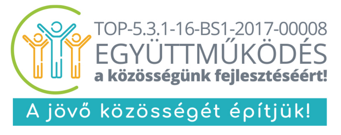 • Projekt címe, azonosító száma: „Együttműködés a közösségünk fejlesztéséért! -a helyi identitás és kohézió erősítése” című TOP-5.3.1-16- BS1-2017-00008 azonosító számú” projekt.