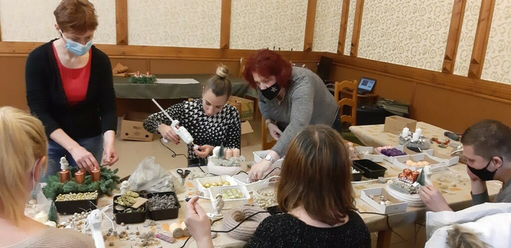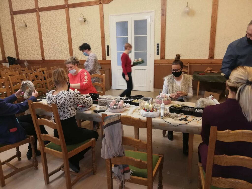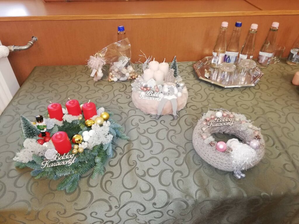 Skrabák Edina helyi vállalkozó irányítása mellett szebbnél szebb alkotások készültek ezen a délelőttön. Az adventre hangolódást segítették az ünnepi kellékek, a szakember által felelevenített szokások, hagyományok, amelyek az ünnepi időszak dekorációihoz kapcsolódnak. A hivatali munkatársak kreatív alkotása nyomán sorra készültek az adventi koszorúk, kopogtatók és egyéb díszek. Bár a résztvevők kis csoportokban vettek részt a programon, az alkotóházban kialakult hangulat és a közösségi kézműveskedés mindenkit kiszakított kicsit a hétköznapok borús és korlátokkal teli monotonitásából.